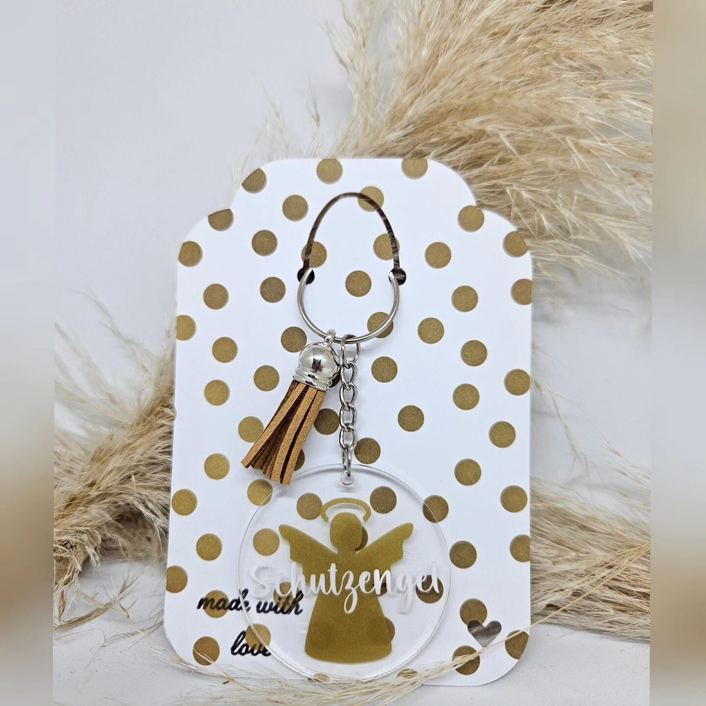 Dieser liebevoll gestaltete Schlüsselanhänger ist ein einzigartiges Accessoire und zugleich ein wundervolles Geschenk für besondere Menschen. Gefertigt aus hochwertigem Acryl, besticht er durch sein modernes, klares Design und den stilvollen Anhänger mit Quaste.