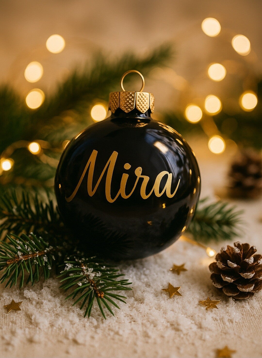 Jede Kugel wird sorgfältig von Hand mit deinem Wunschnamen oder Wunschtext veredelt – perfekt als persönliches Highlight am Baum, als liebevolles Geschenk oder als stilvolle Dekoration für dein Zuhause.