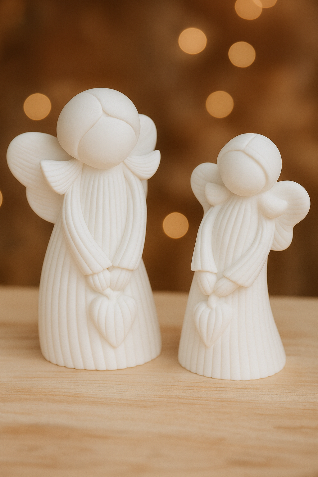 Die matte, fein strukturierte Oberfläche verleiht den Engeln eine moderne, zugleich warme Ausstrahlung, die sich harmonisch in jedes Wohnambiente einfügt – ob als Dekoration zur Weihnachtszeit, als Geschenk für einen lieben Menschen oder als stiller Begleiter auf einer Gedenkecke.